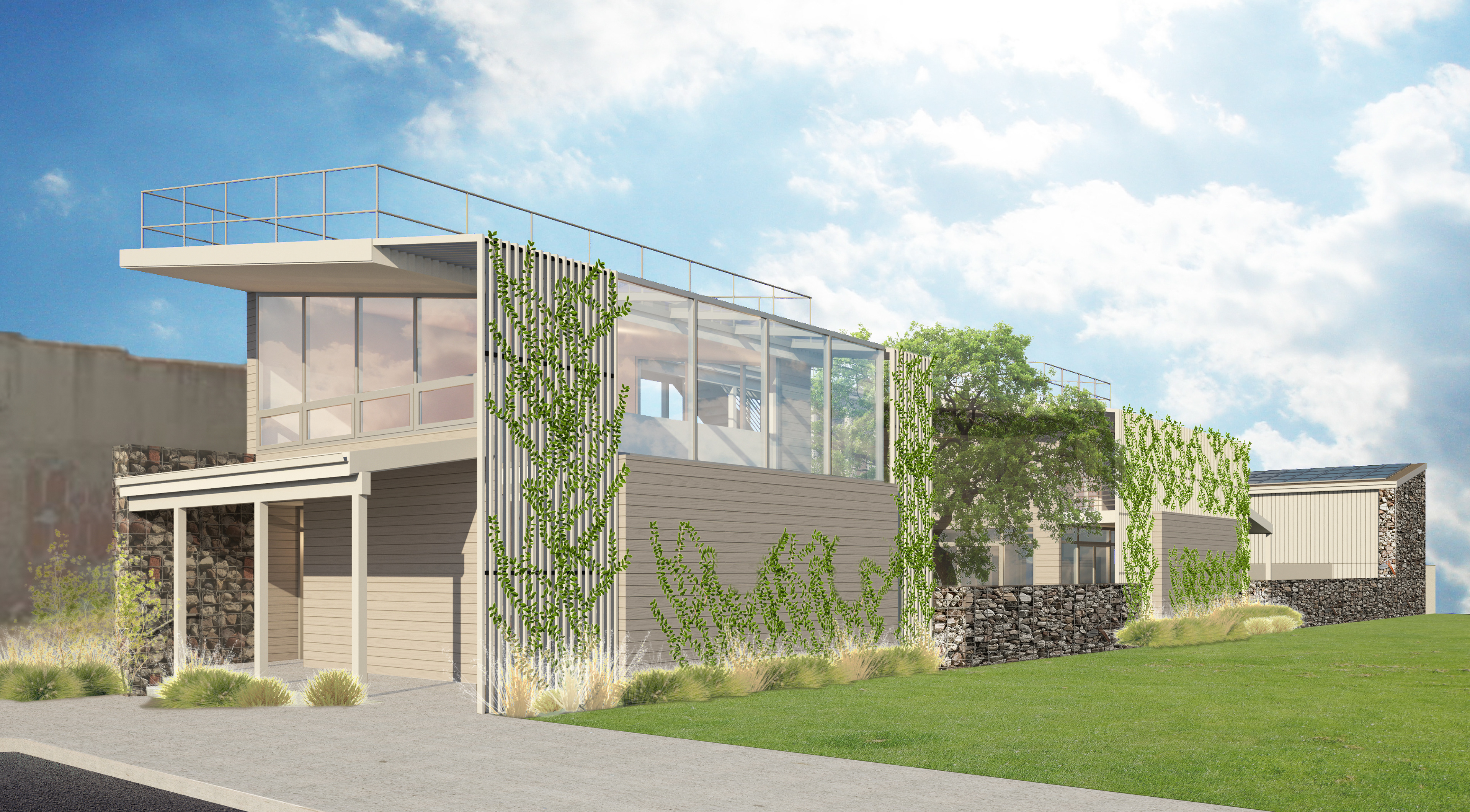 THE HEALTHY HOUSE IS A “21ST CENTURY SHOTGUN HOUSE” WITH A FOCUS ON FOSTERING HEALTHY LIVING AND COMMUNITY. IT WILL ADVANCE THE TRADITIONAL FAMILY SHOTGUN HOME BY PROVIDING A MODEL FOR BOTH PRESENT AND FUTURE LIVING. THE HEALTHY HOUSE WILL BE A MIXED-USE BUILDING CONSISTING OF A FARMSTAND, TEACHING KITCHEN, OFFICE AND LIVING SPACE THAT PROMOTE THE IMPORTANCE OF A HEALTHY WORK ENVIRONMENT AND ITS INFLUENCE ON THE SURROUNDING COMMUNITY. IT WILL BE A CONTEMPORARY INTERPRETATION OF THE TRADITIONAL SHOTGUN HOUSE THAT INCLUDES SUSTAINABLE FEATURES SUCH AS: PASSIVE SOLAR DESIGN STRATEGIES, ABUNDANT DAYLIGHTING & NATURAL VENTILATION, LIVING ROOFS, GRID-TIED SOLAR PANEL SYSTEM, RECYCLED BUILDING MATERIALS AND INTERIOR FINISH MATERIALS CONTAINING NO VOLATILE ORGANIC COMPOUNDS.  THE PROPERTY WILL ACCOMMODATE A LOCAL ORGANIZATION, LOUISVILLE GROWS, DEDICATED TO PROMOTING URBAN AGRICULTURE AND FORESTRY.