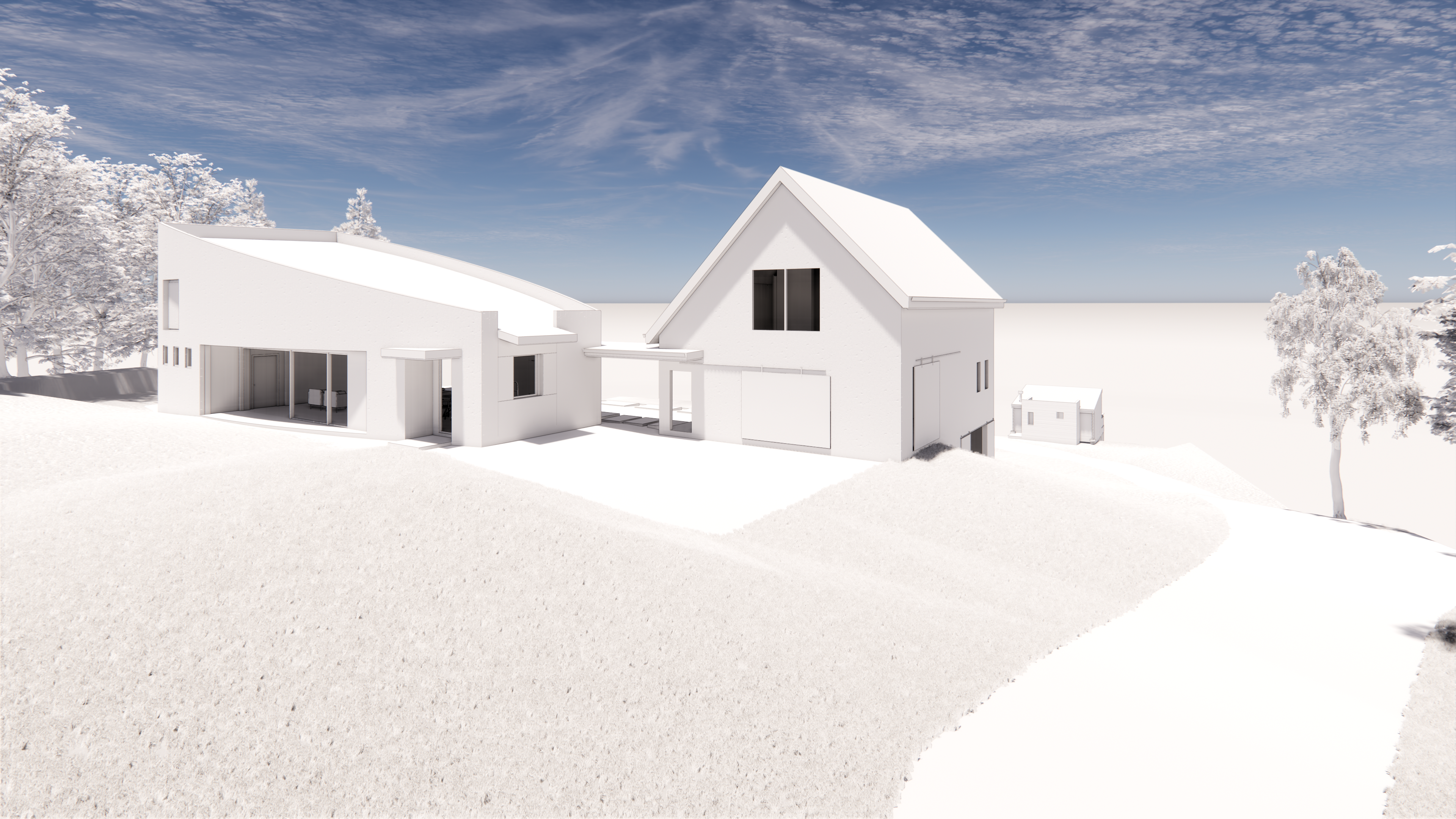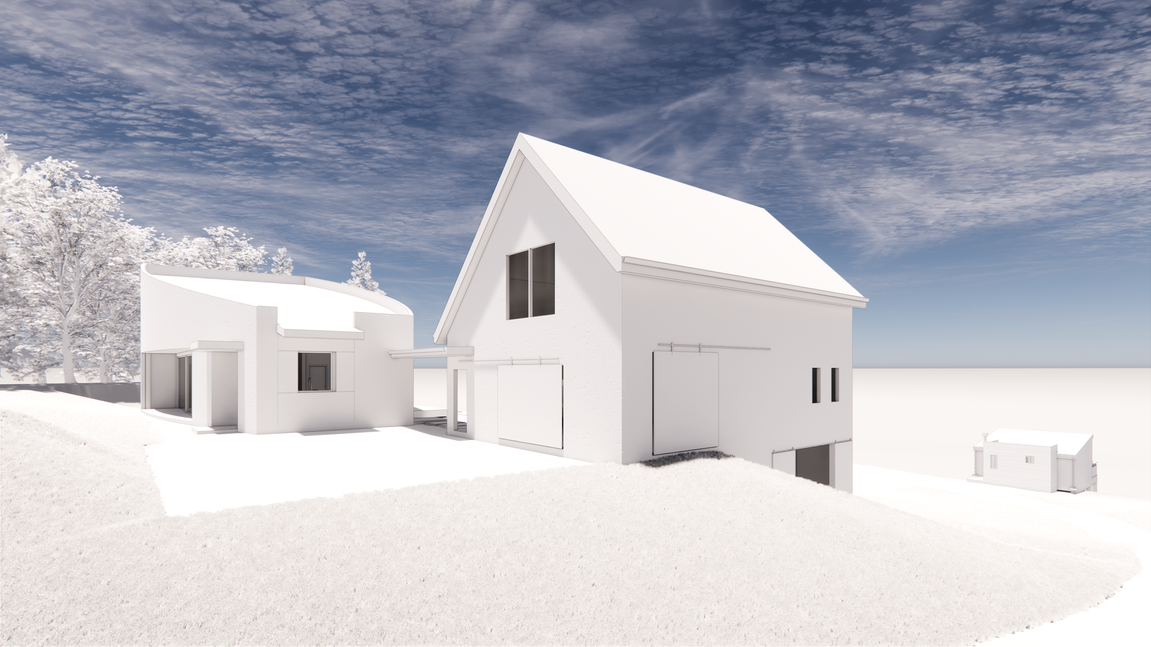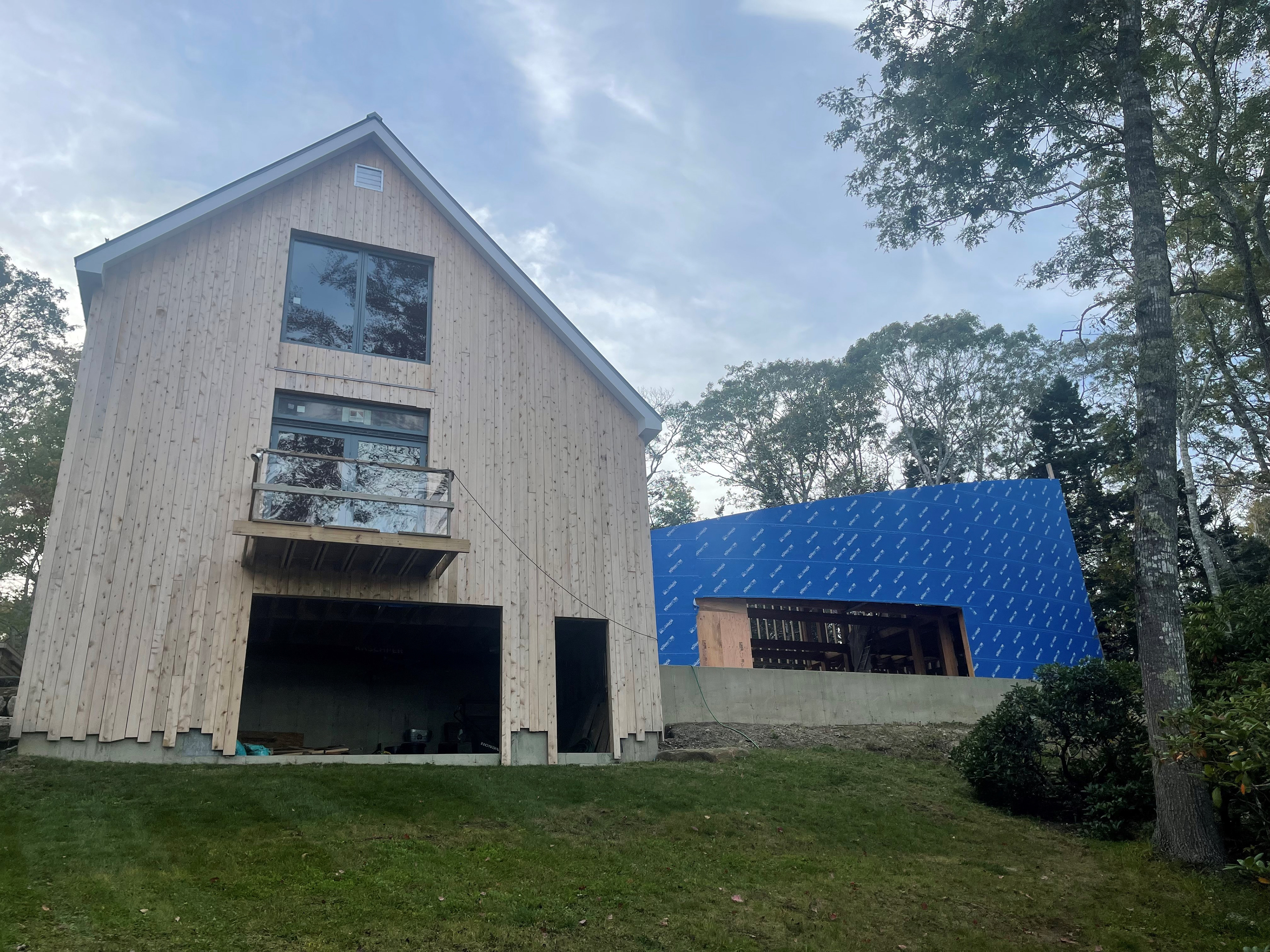 Phase 3 - New Main Hill House and Boat Barn. Timber Frame with reclaimed wood siding. Collaboration with Mark Miller MK Think.